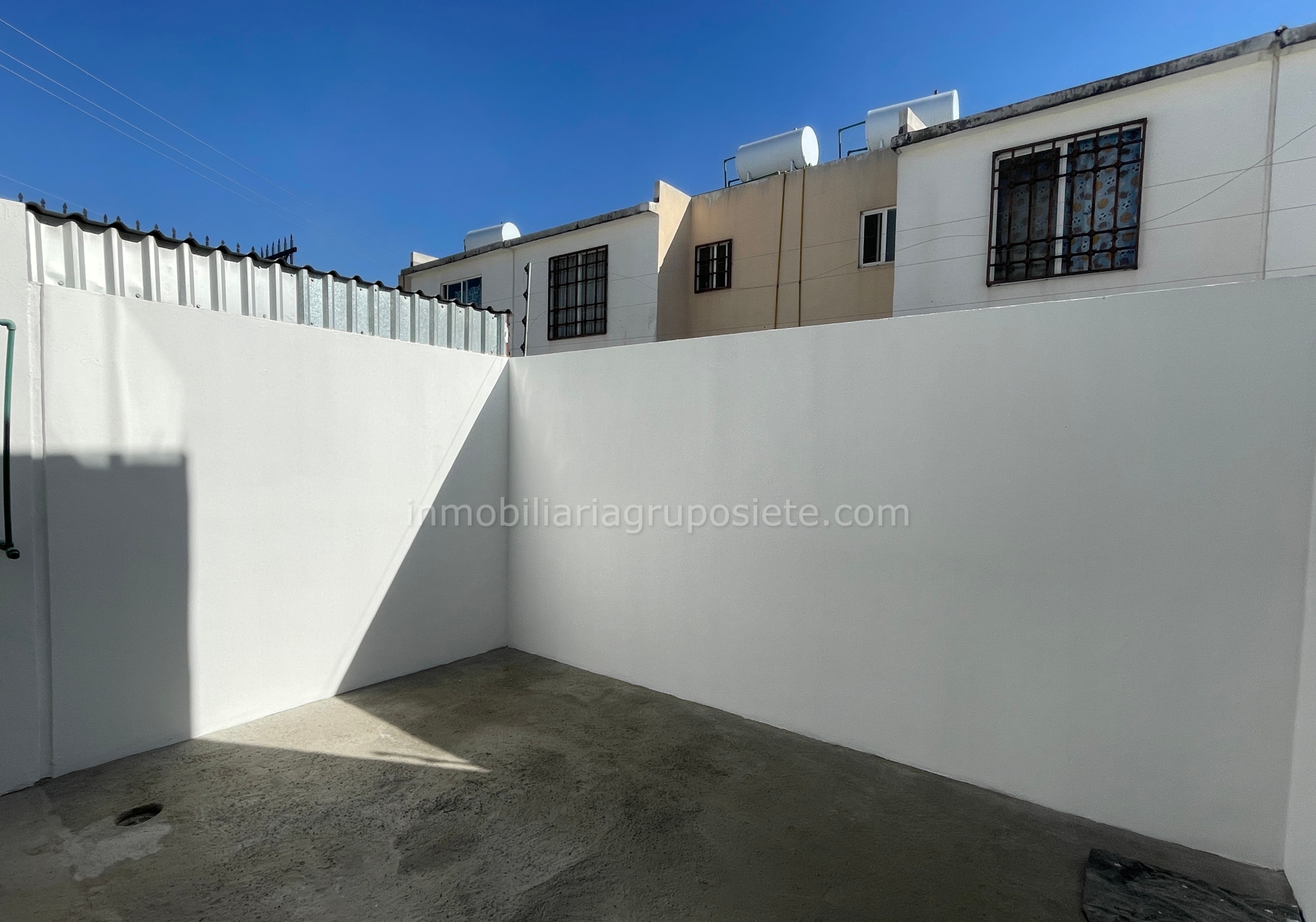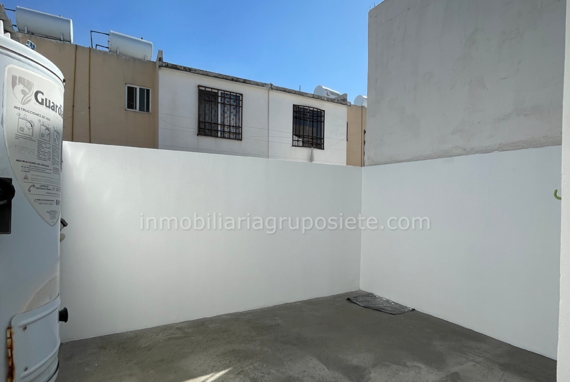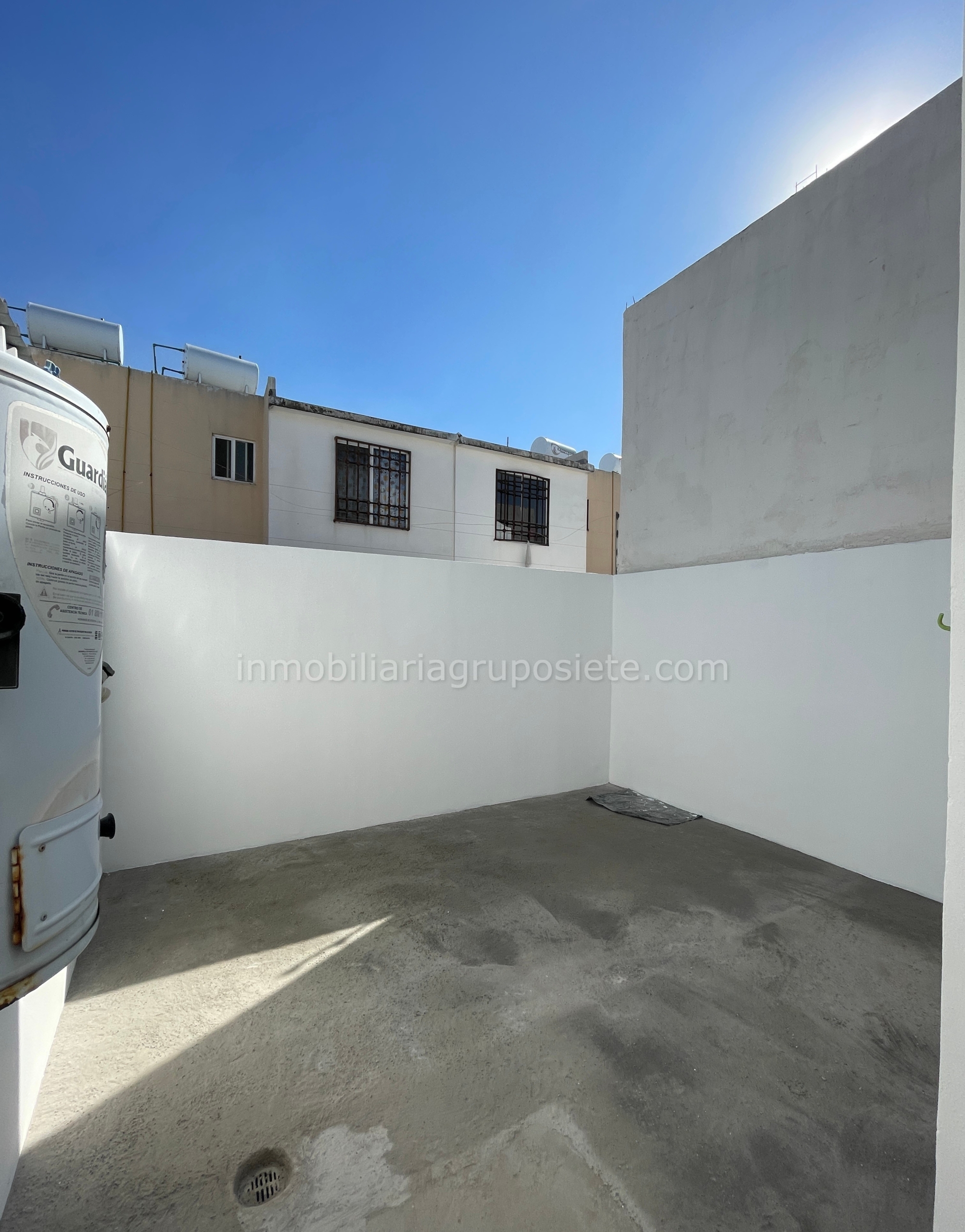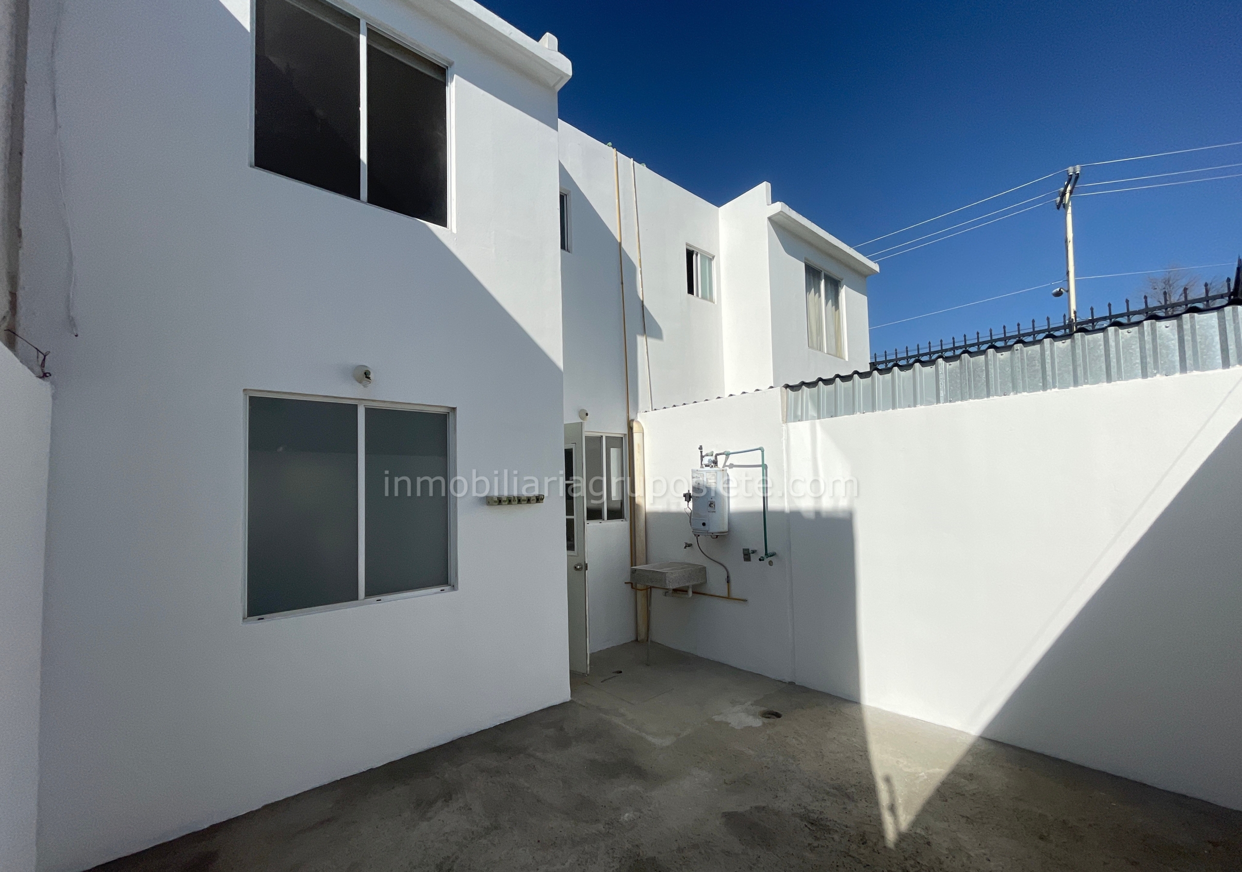2 habitaciones con closet, 1 ½ baño, estancia sala comedor, cocina integral, patio posterior amplio con boiler, área de lavado, garage para un auto