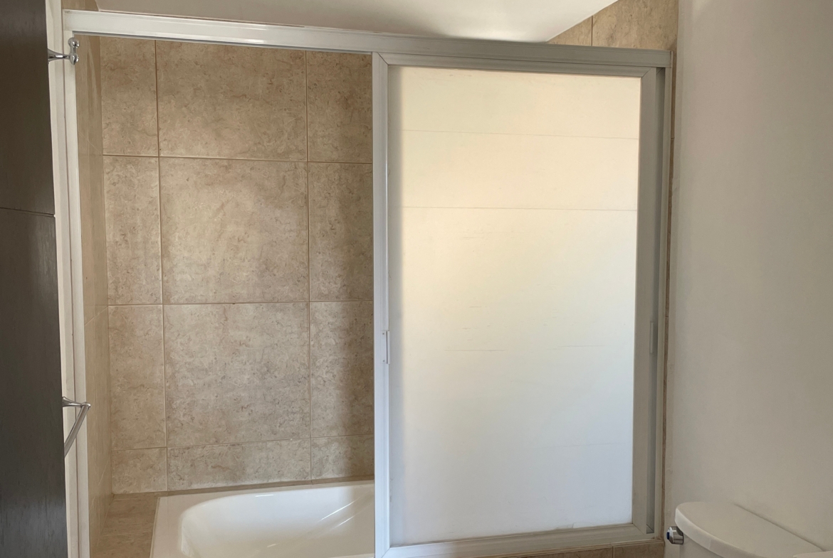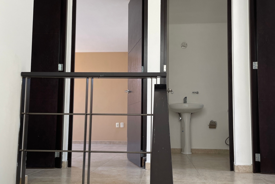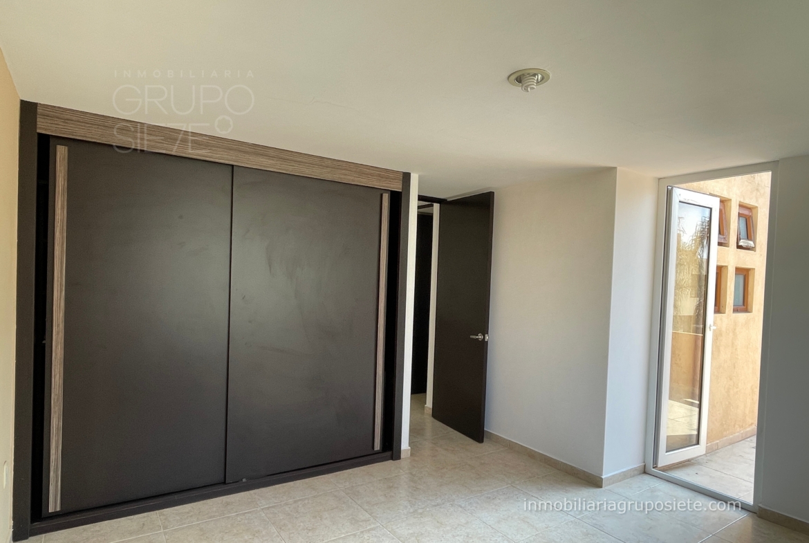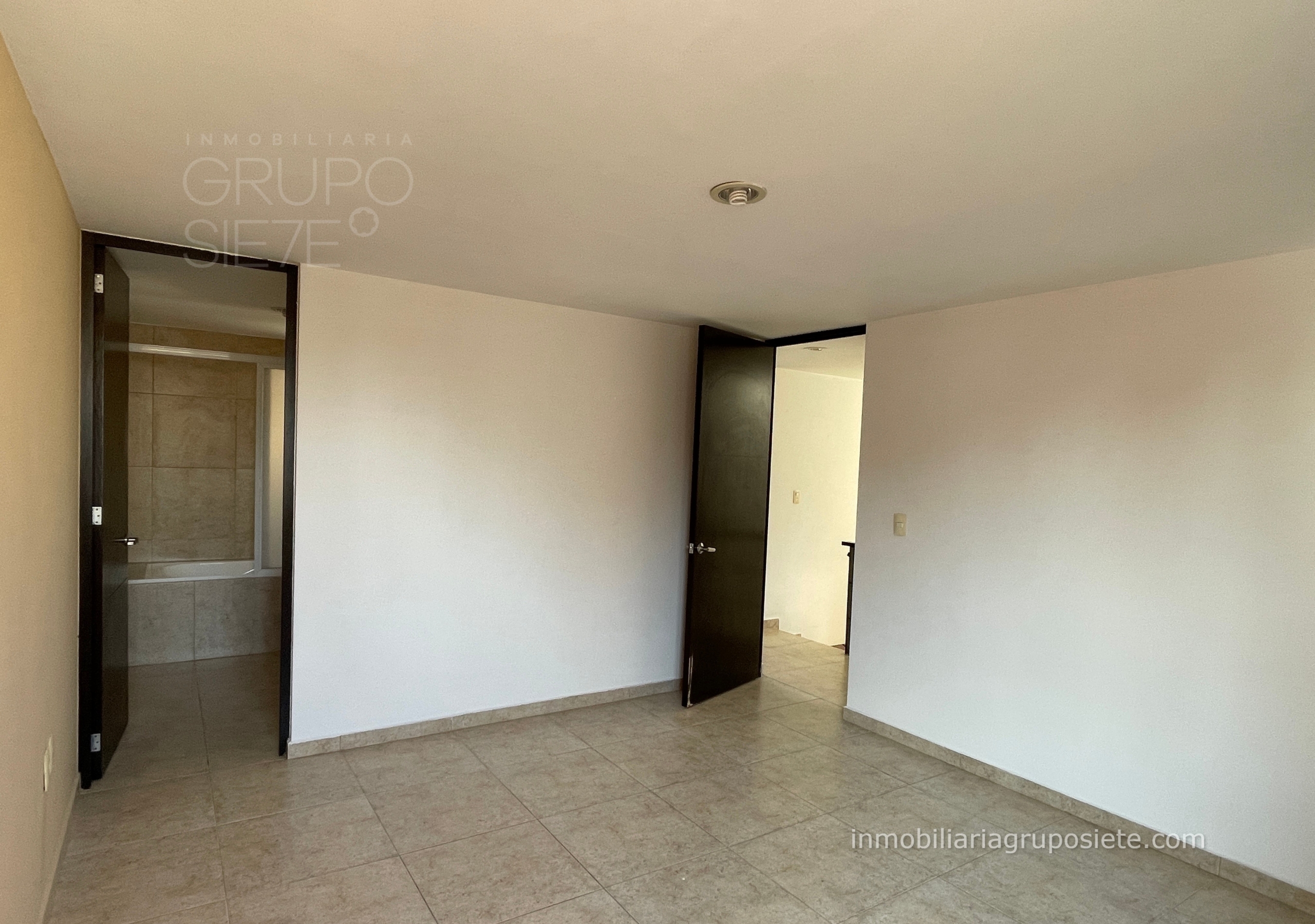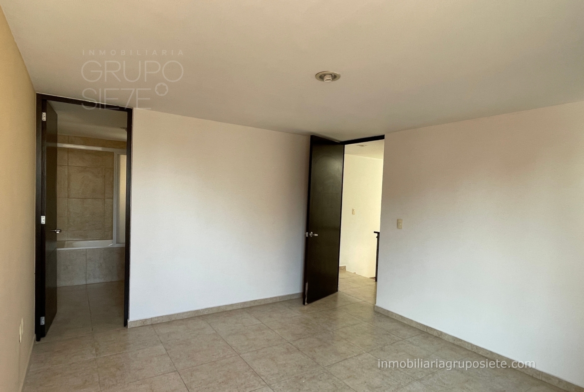 Recámara principal con baño privado con tina y cancel y acceso a terraza