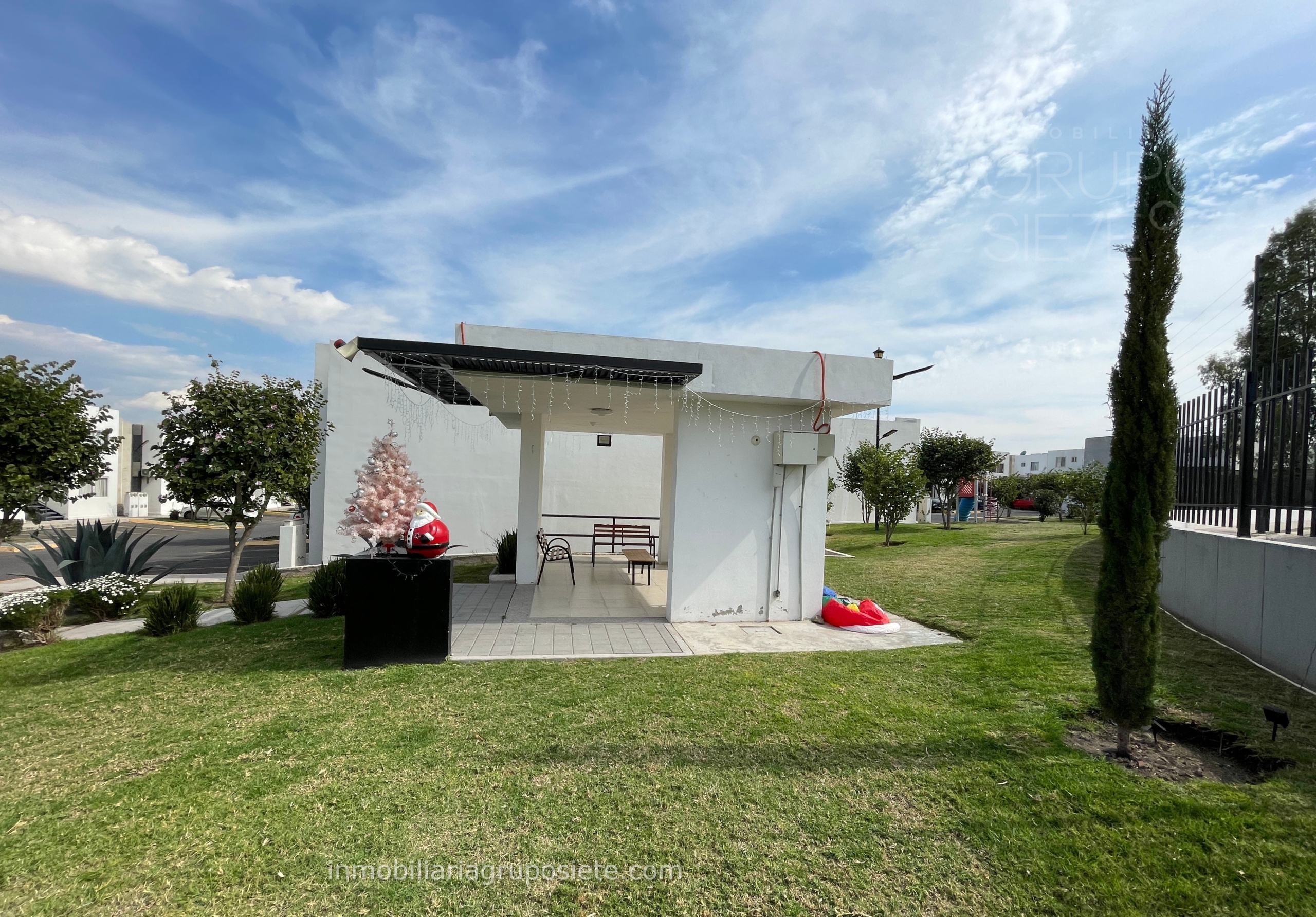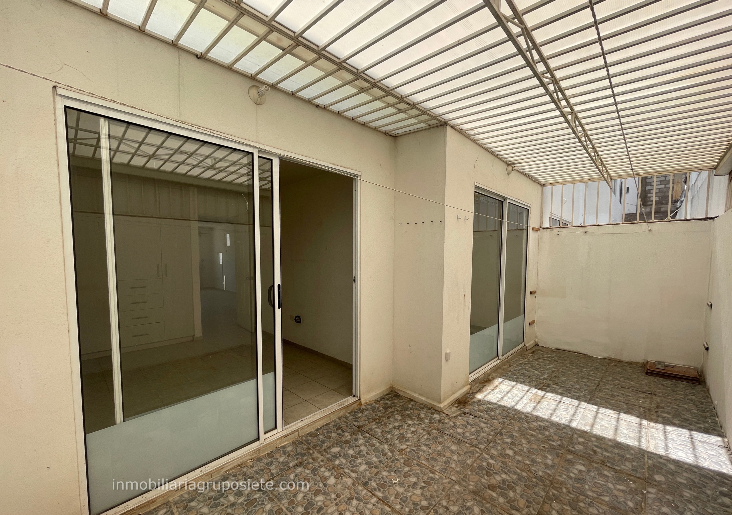 - Patio trasero con piso cerámico, protecciones techado con policarbonato