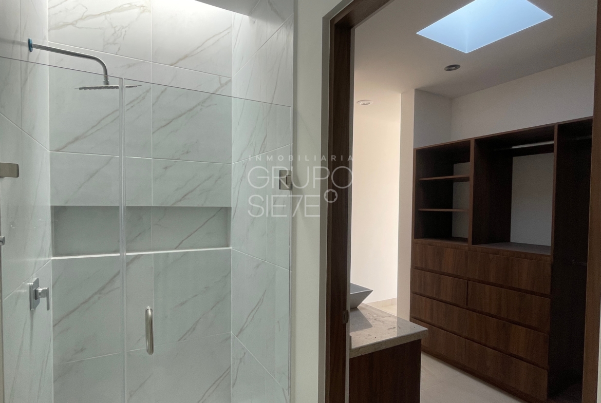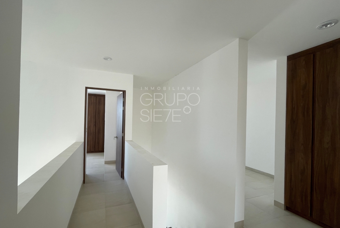 - Planta Alta: Habitación principal cuenta con baño privado vestidor y terraza , Secundarias con baño y closet, sala de tv con terraza y Closet de blancos