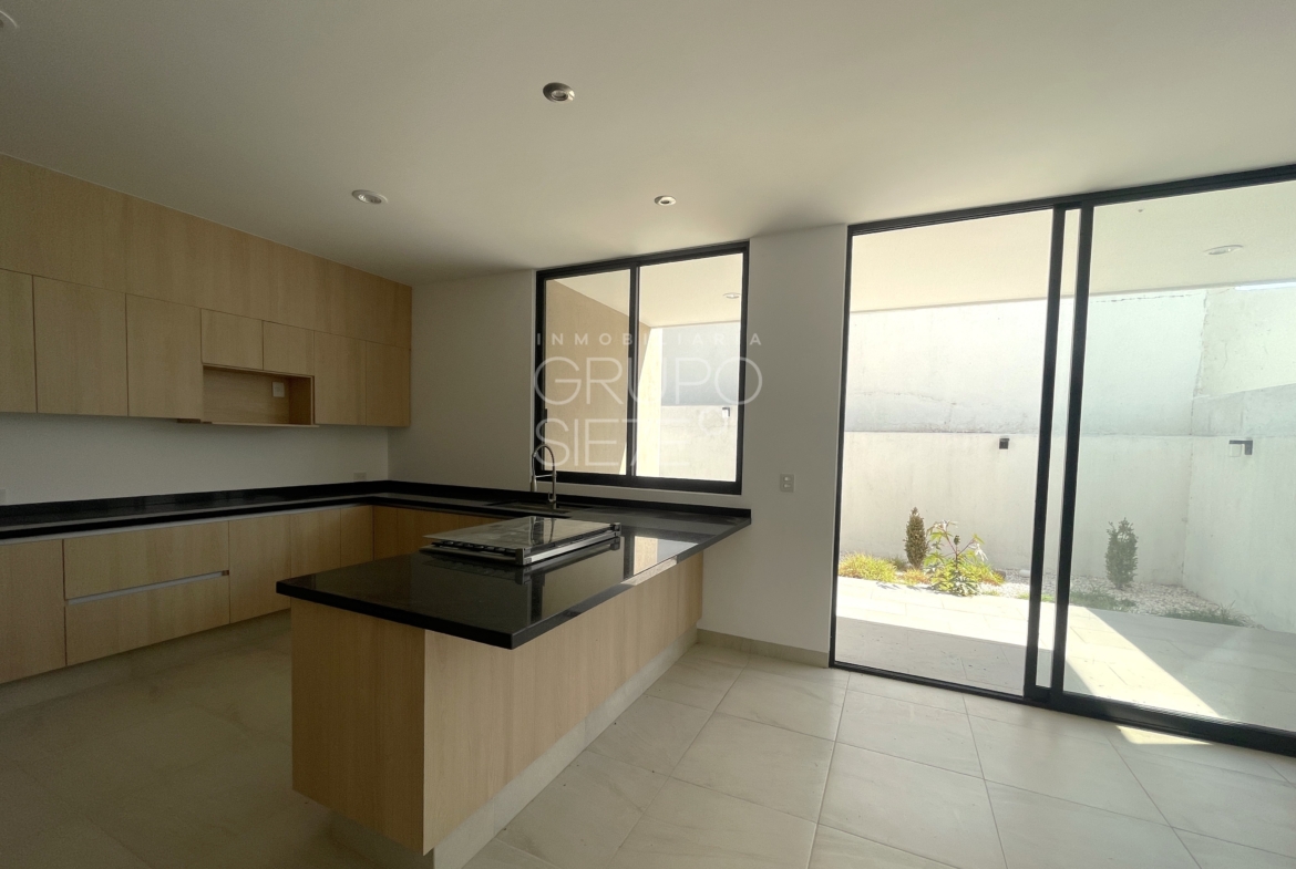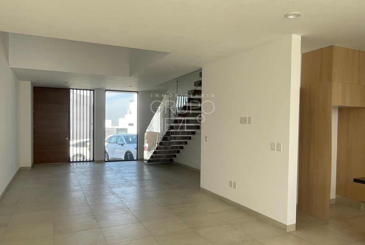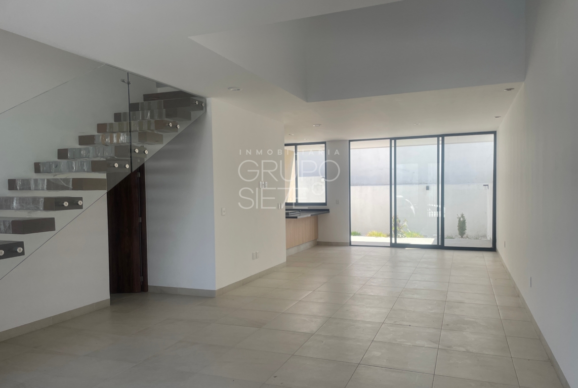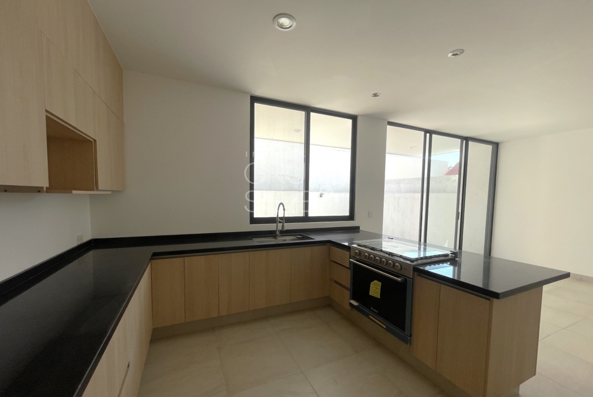 - Planta Baja: Una impresionante doble altura te recibe en la estancia. Sala y comedor integrados, amplia y lujosa cocina totalmente equipada, Estudio, o habitación de visitas con medio baño, área de servicio techado y patio posterior y bodega
