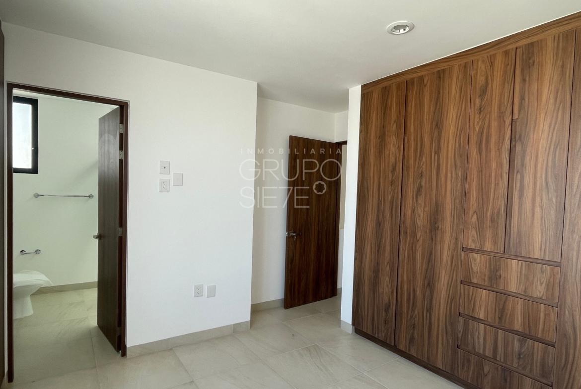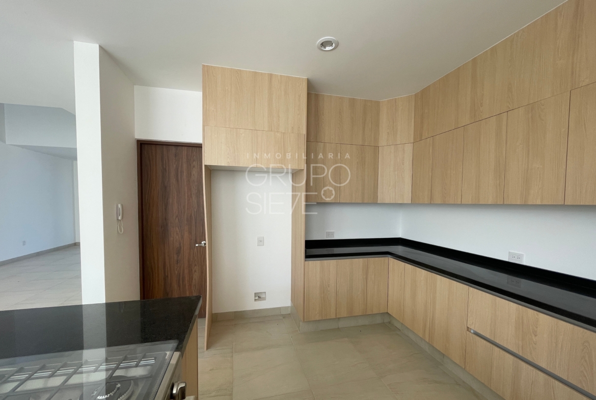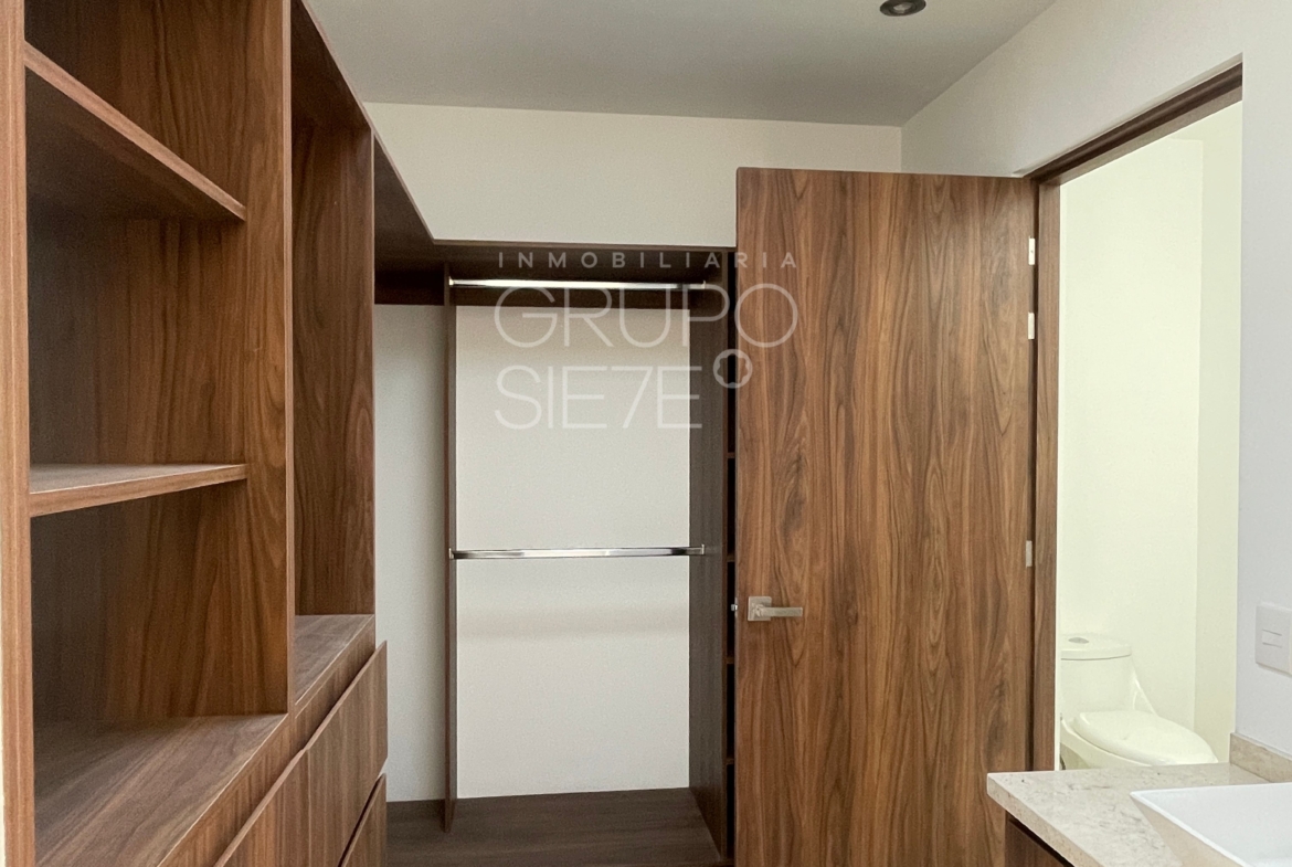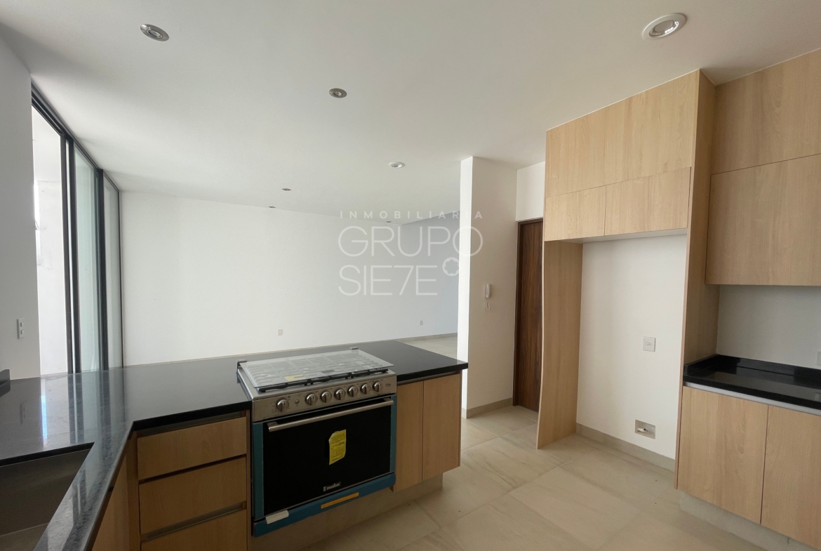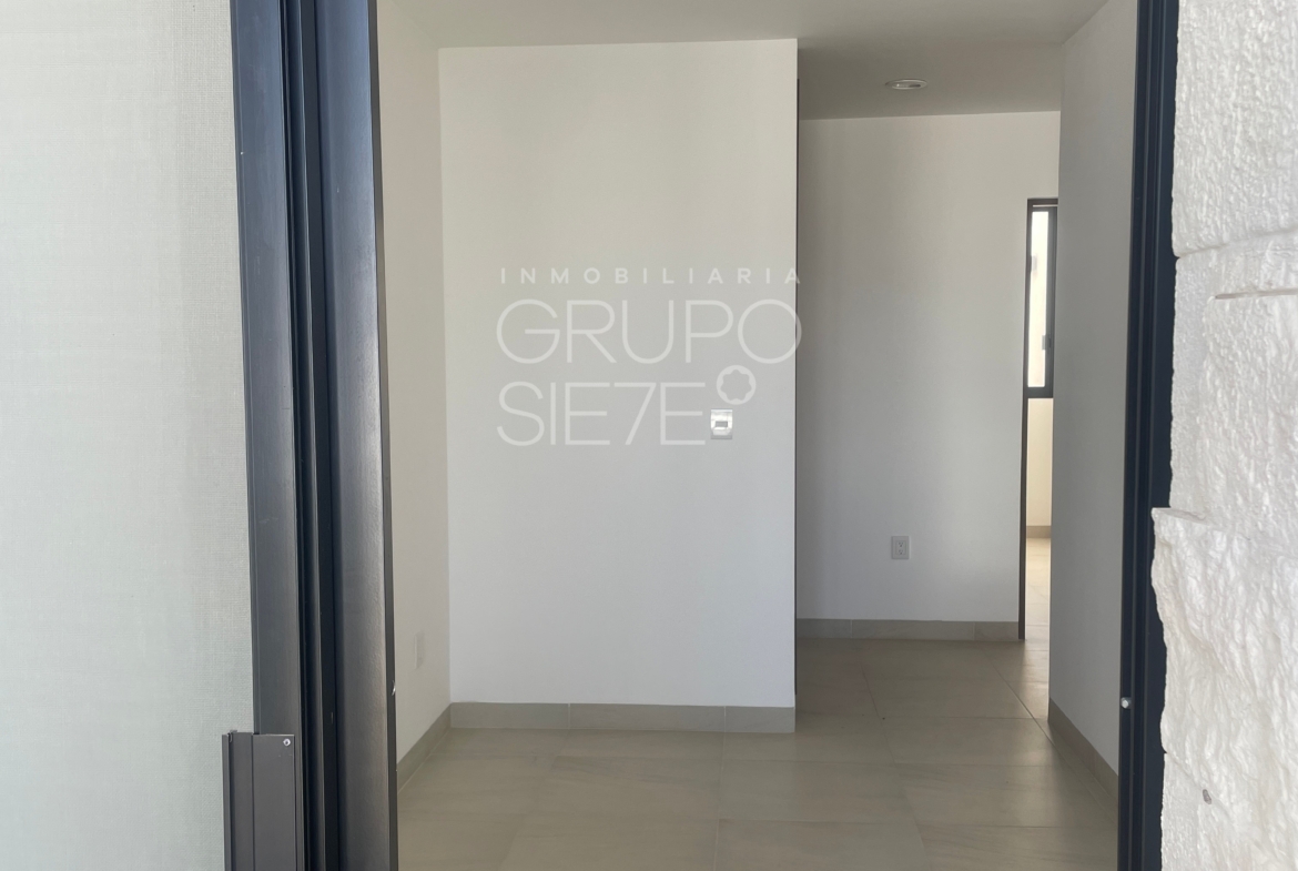 - Planta Baja: Una impresionante doble altura te recibe en la estancia. Sala y comedor integrados, amplia y lujosa cocina totalmente equipada, Estudio, o habitación de visitas con medio baño, área de servicio techado y patio posterior y bodega